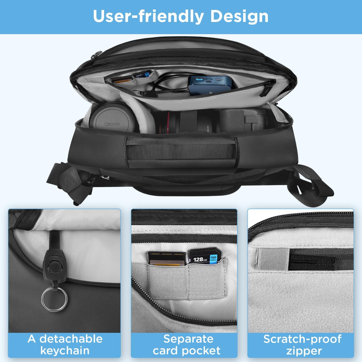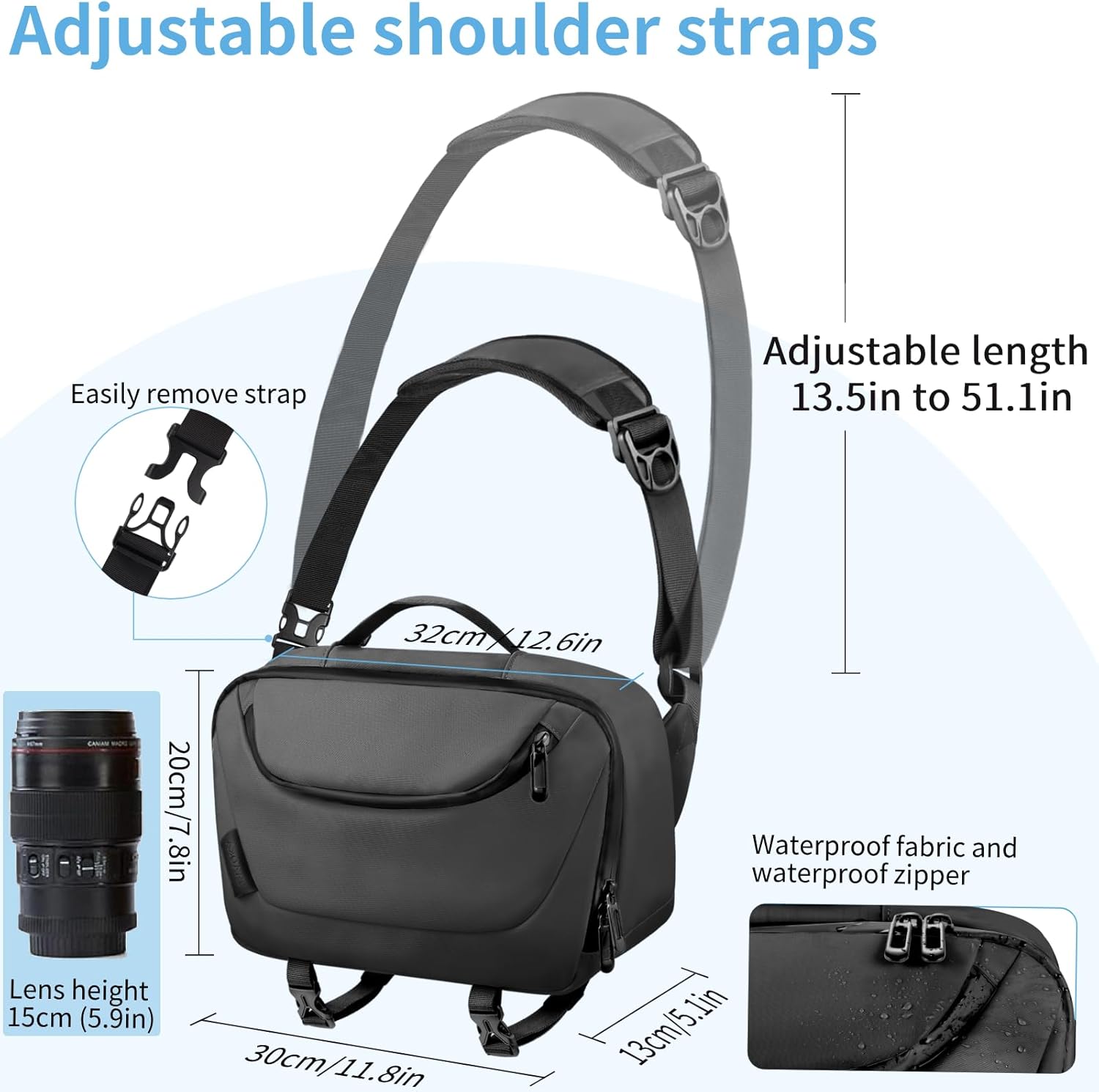 Designed to fit DSLR, SLR, and mirrorless cameras, this crossbody camera bag is both stylish and functional. The adjustable strap allows for a comfortable fit, while the multiple compartments provide ample storage space for camera bodies, lenses, and accessories.